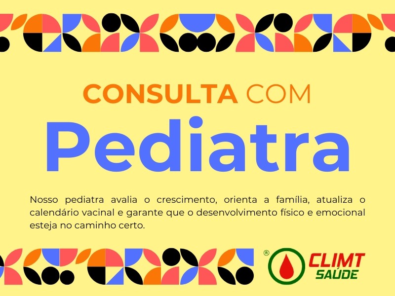 Consulta com Pediatra em Goiânia na CLIMT SAÚDE. Atendimento humanizado, completo e preventivo para crianças e adolescentes. Agende agora!