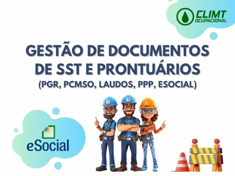 Na prática, a Gestão de Documentos de SST e Prontuários (PGR, PCMSO, laudos, PPP, eSocial) cuida de: