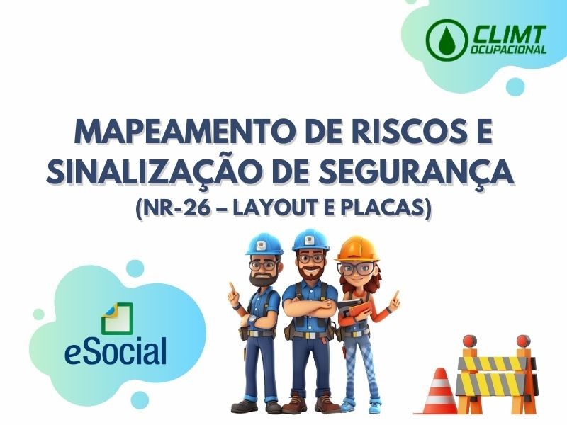 A partir do Mapeamento de Riscos e Sinalização de Segurança (NR-26 – layout e placas), a CLIMT especifica: