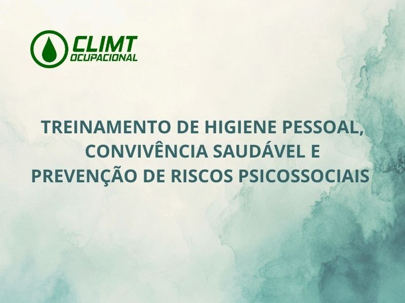 Entre em contato com a CLIMT SAÚDE | OCUPACIONAL | AMBIENTAL, informe o porte da empresa, o segmento e os principais problemas de convivência e higiene que você enfrenta hoje, e vamos montar um Treinamento de Higiene Pessoal, Convivência Saudável e Prevenção de Riscos Psicossociais compatível com a sua realidade.